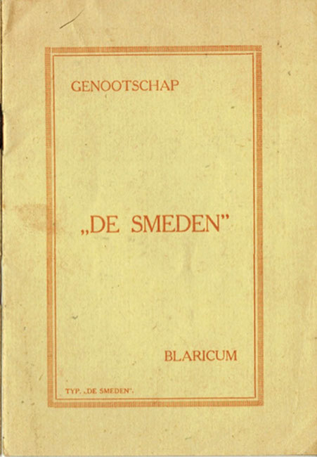 Voorkant Statuten van het Genootschap De Smeden te Blaricum – inhoud: ‘Eerste Balklaag’